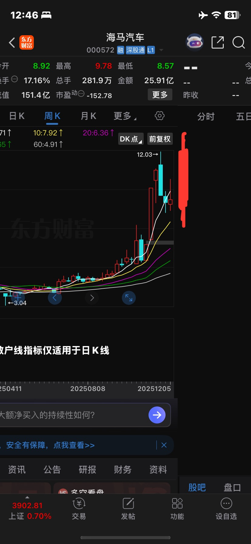 海马下周终极目标11到12元左右卖!记住到时候要落袋为安!海峡和海南共生!平潭什