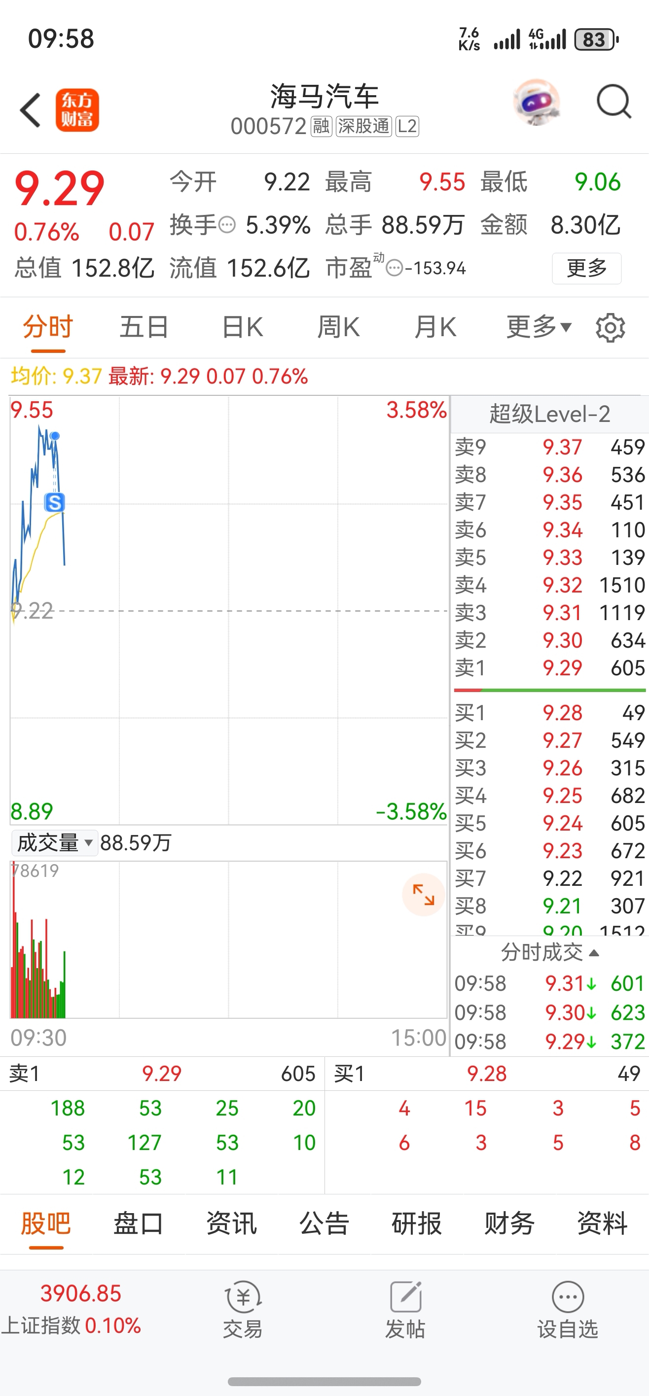 $海马汽车(SZ000572)$ 每天冲高回落,还好我跑的快
