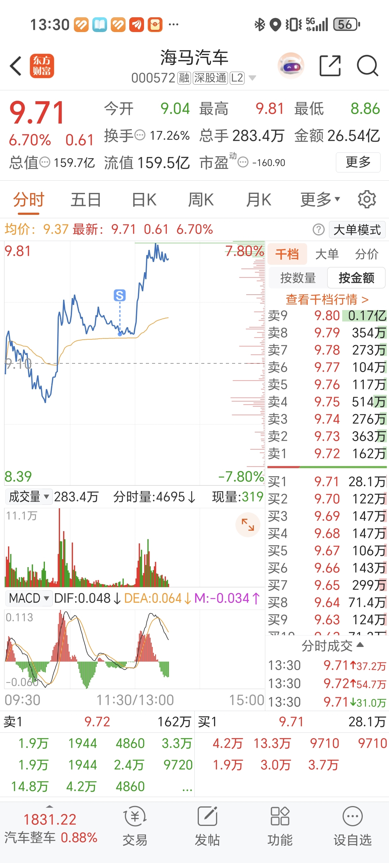 $海马汽车(SZ000572)$ 亏的裤衩子都没了,一卖就涨,真是服了