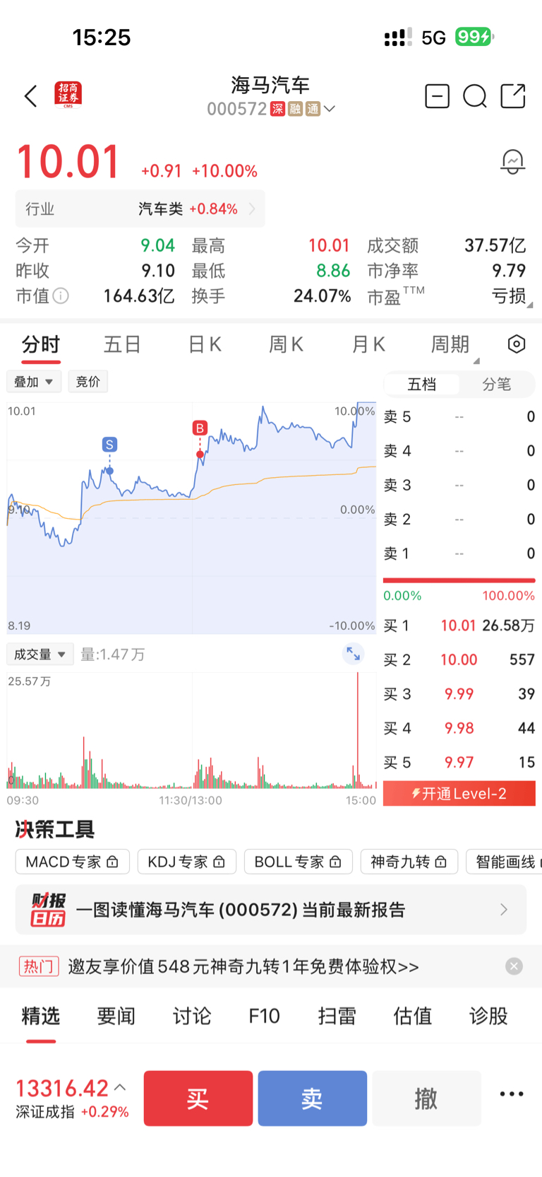 $海马汽车(SZ000572)$ 今天当了一次SB