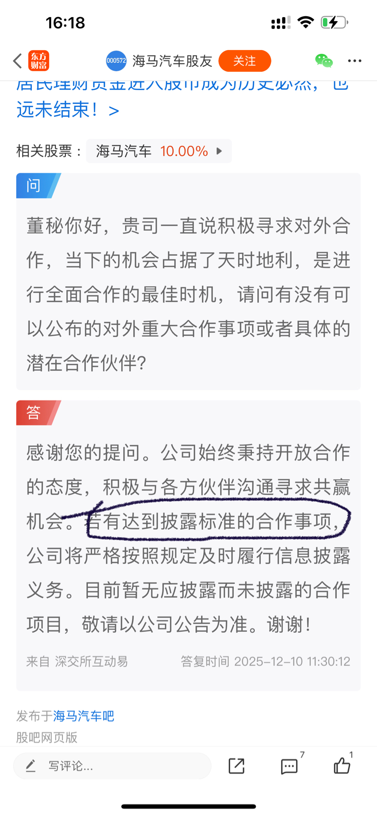 $海马汽车(SZ000572)$ 我个人理解为目前还达不到披露标准……