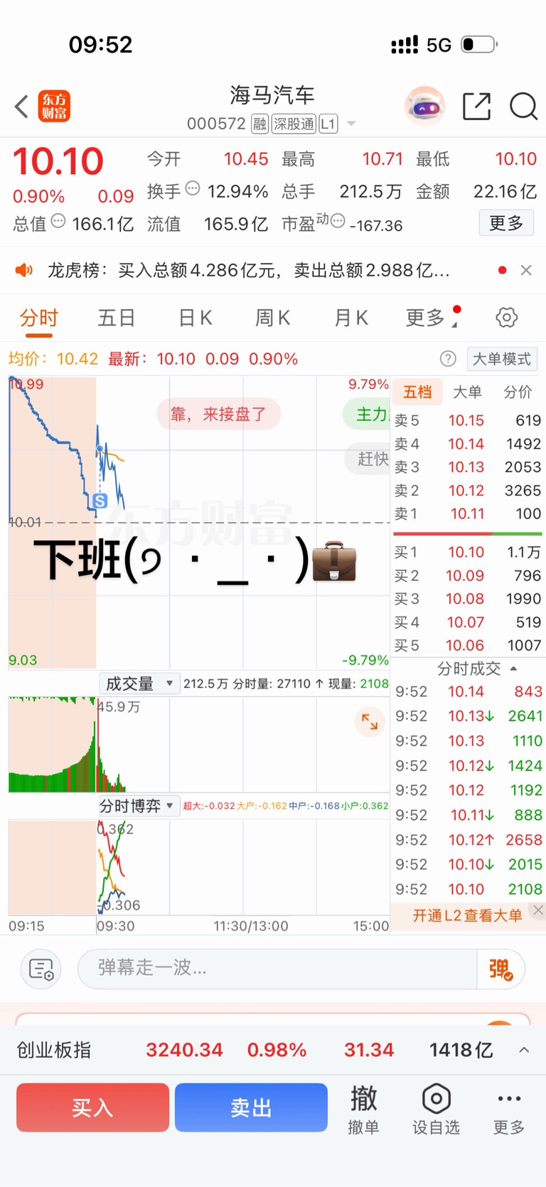 竞价没卖出去,还好开盘抬了一手,早早就下班了,今天吃烤肉去