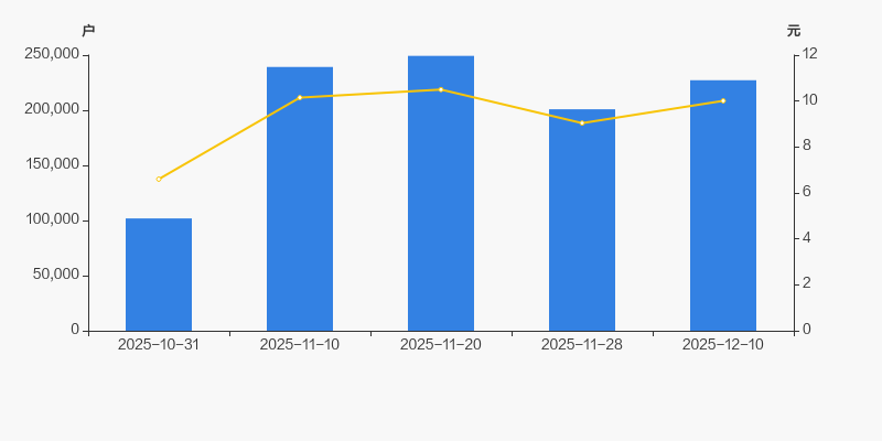 2025年10月31日至今,公司股东户数成倍增长,区间涨幅达123.04%。2025年10月31日至2025年12月10日区间股价上涨51.67%。