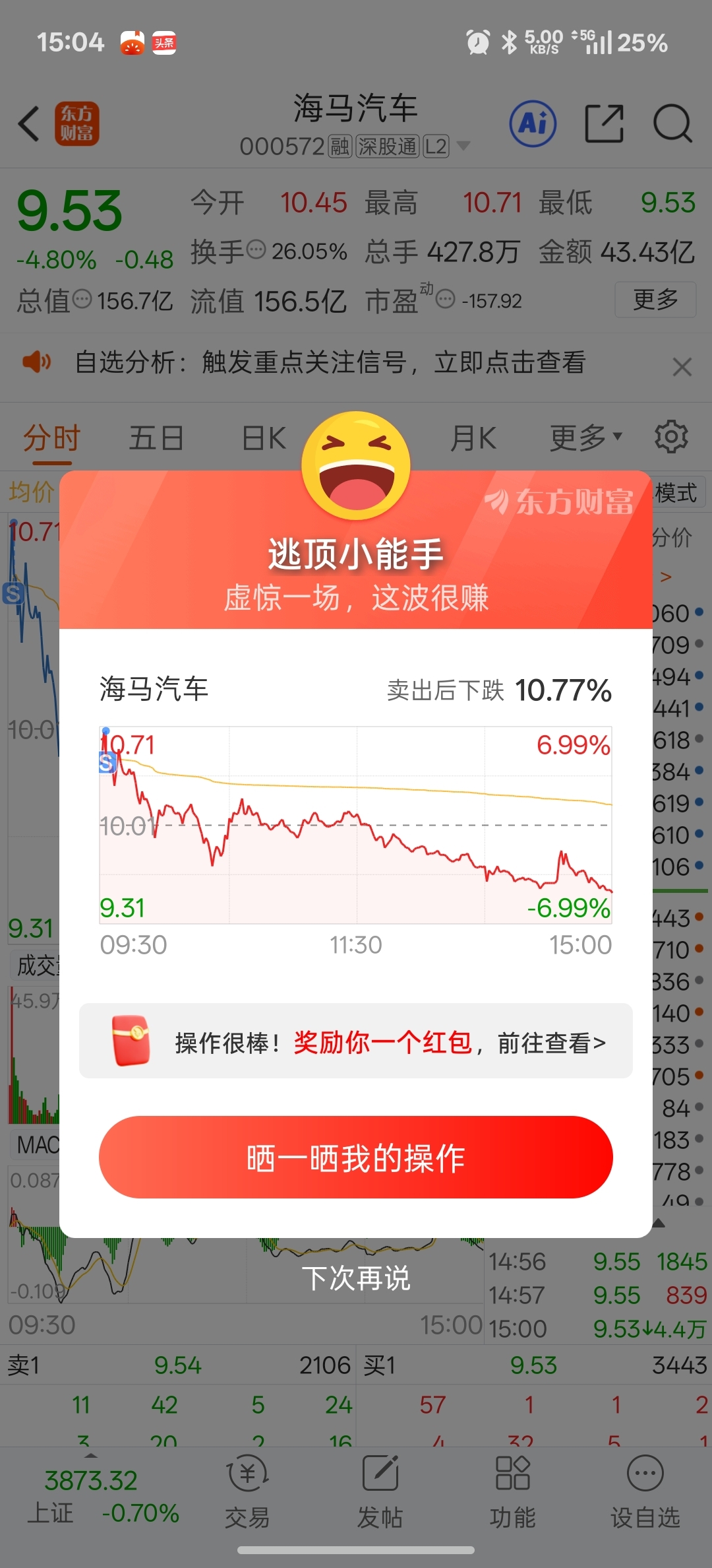 $海马汽车(SZ000572)$ 明天低开杀一波又可以进去了