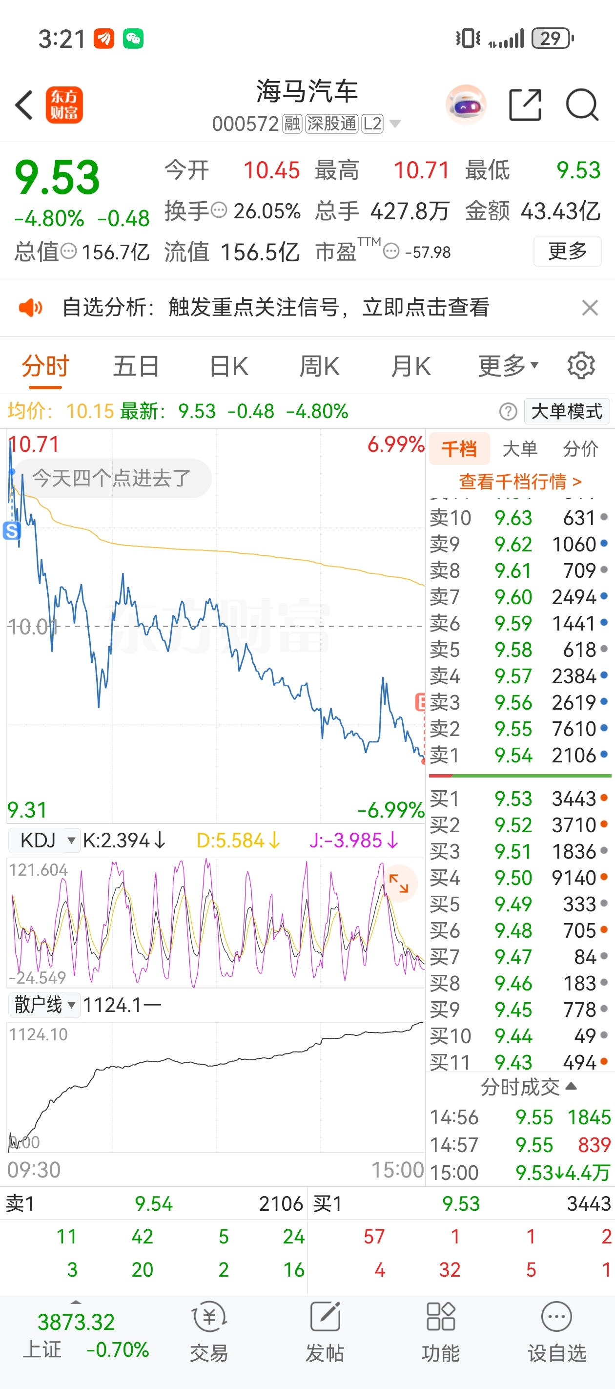 早上看情况不对跑了收盘接回