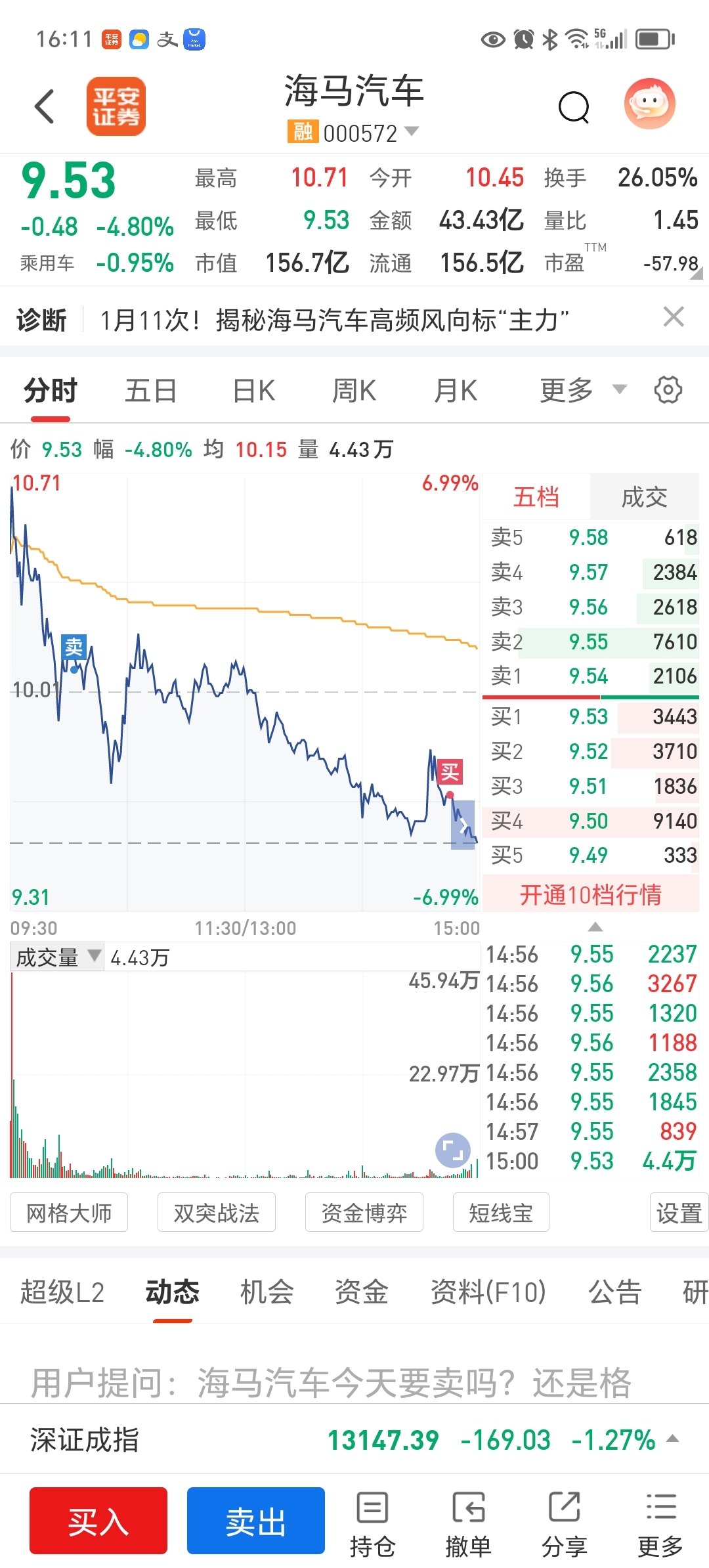 $海马汽车(SZ000572)$ 收贱又买回来了,不知道明天怎样,最近买了很多票,当天涨停追进去,第二天全部大跌,那些连续涨停的就是买不到