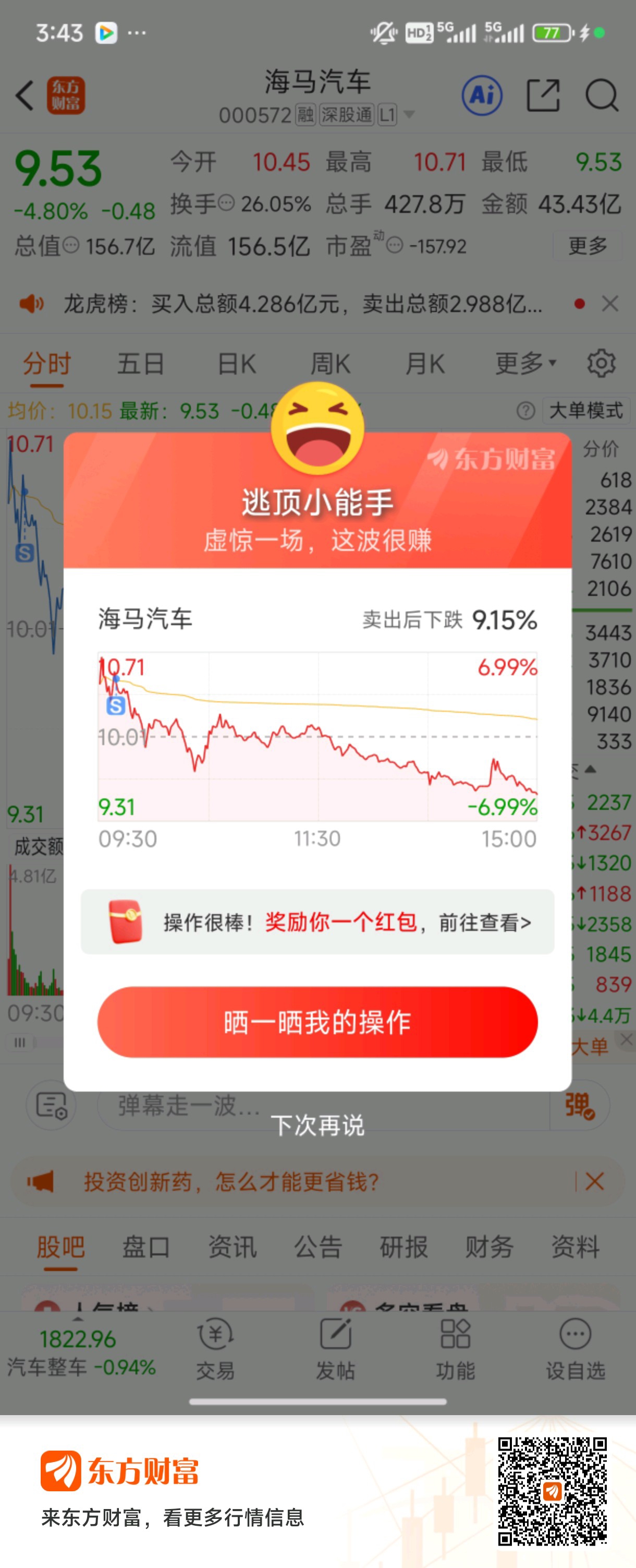 $海马汽车(SZ000572)$ 当所有人知道的利好就是利空,股价上升中,一浪比一浪还低,外加最差的买入开源,最好的卖出拉萨!这么多buff在,不跑更待何时!