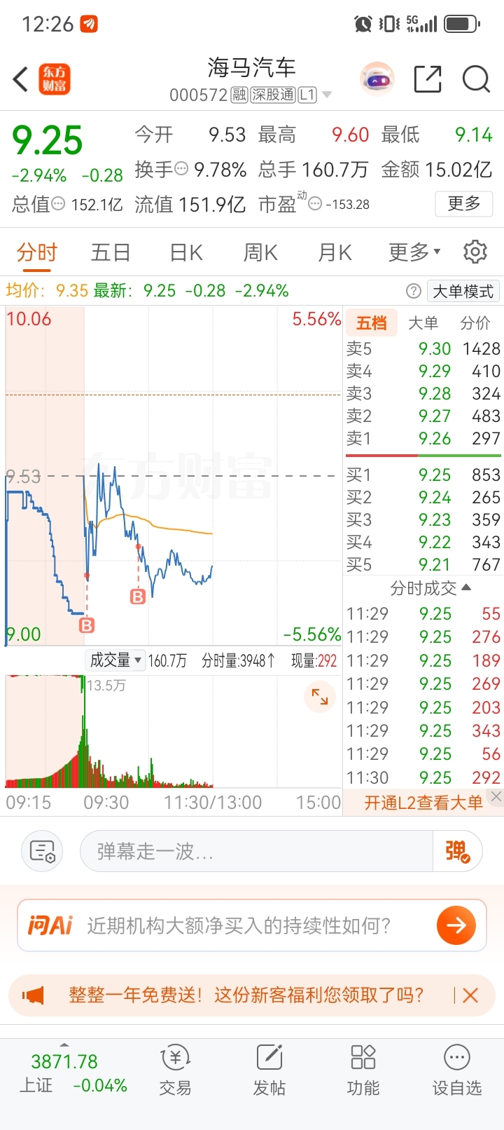 $海马汽车(SZ000572)$ 老子有仓位进可攻退可守 爱咋咋地