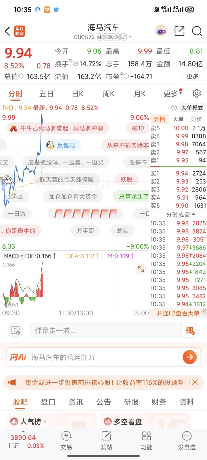 $海马汽车(SZ000572)$ 你是人吗,天天水下洗澡,一卖就飞