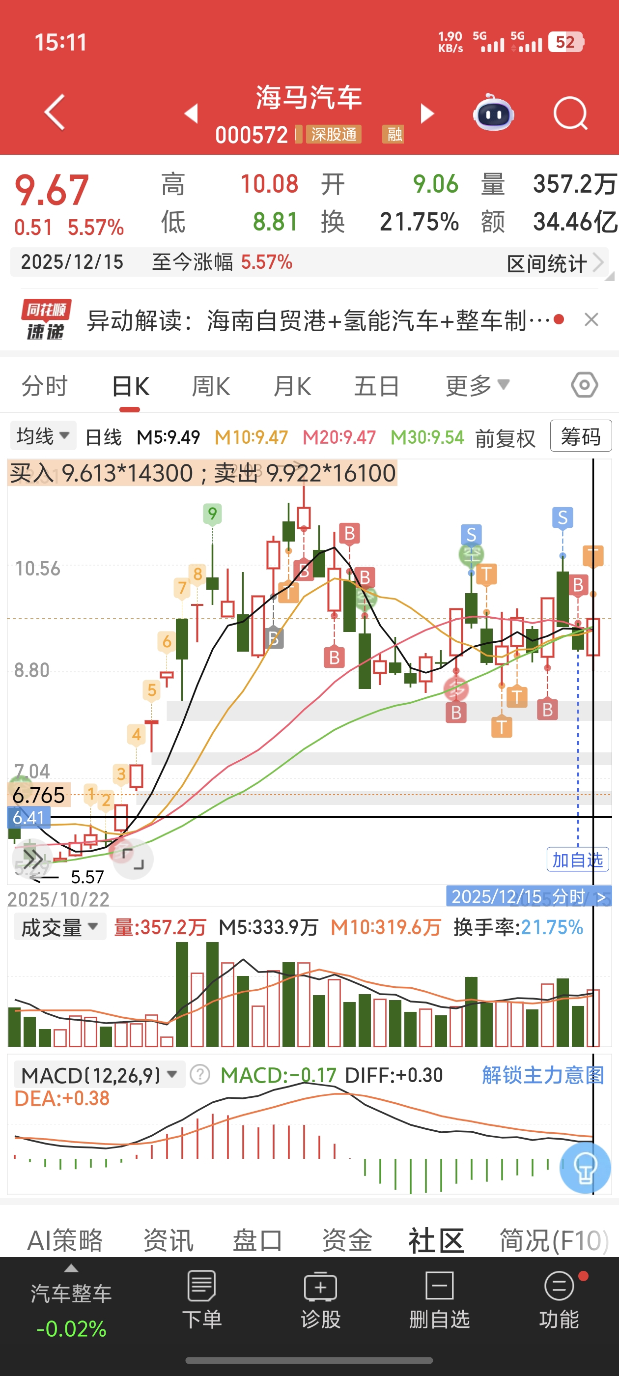 $海马汽车(SZ000572)$ 天天做T,这个票不做T等死,从亏4w到赚4w