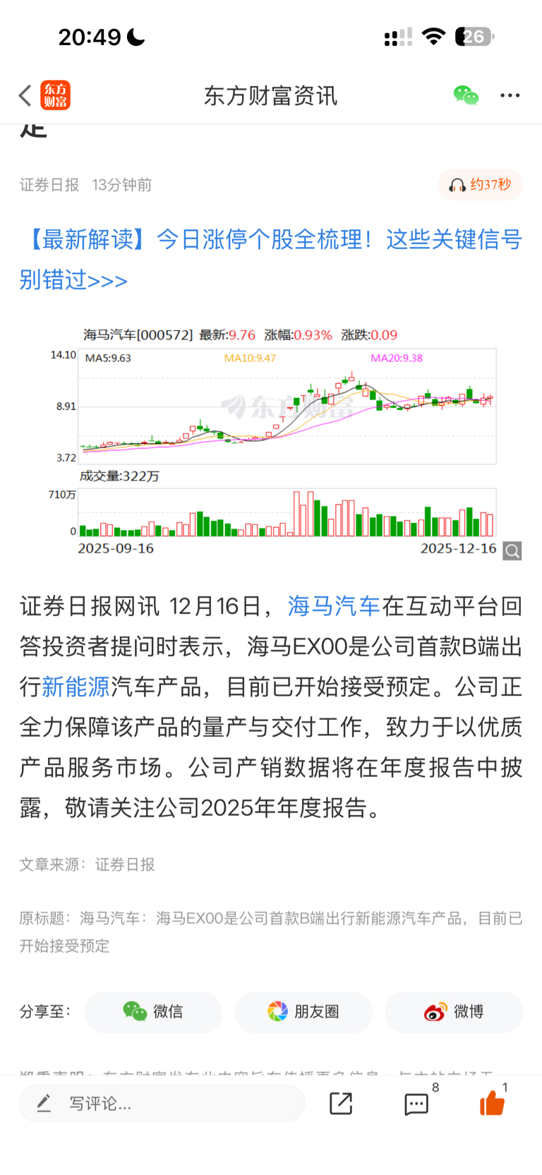 $海马汽车(SZ000572)$ 涨到年底,每个股东买一辆海马ex00