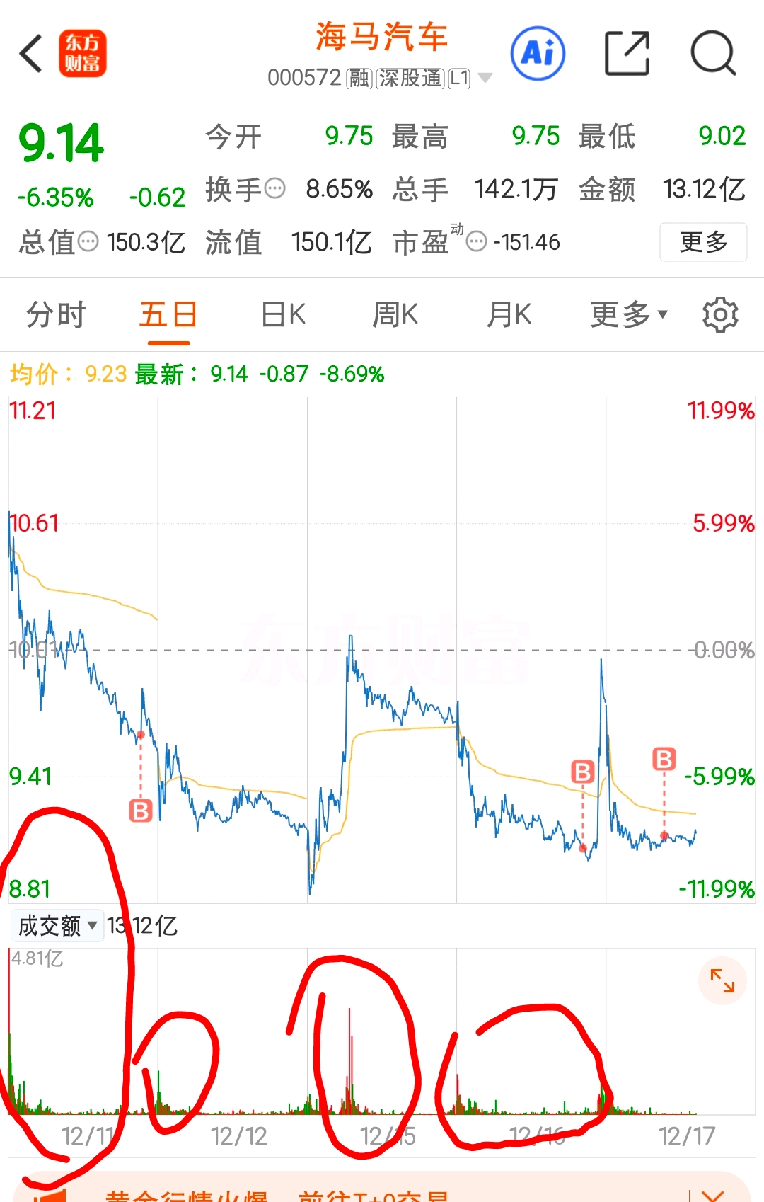 这是公司基本面,遇到政策风炒作的典型失败案例。从今天起,海马已经完蛋。其实从昨天资金流出就看出端倪来了,还是过于对自贸区信心满满。结局只有被套。这是需要深刻反思的地方。炒作的股必须得有真材实料的东西,可惜海马都是半吊子,拿不起来。扶不起来的阿抖啊。可惜了。心态尽失了,兄弟们。