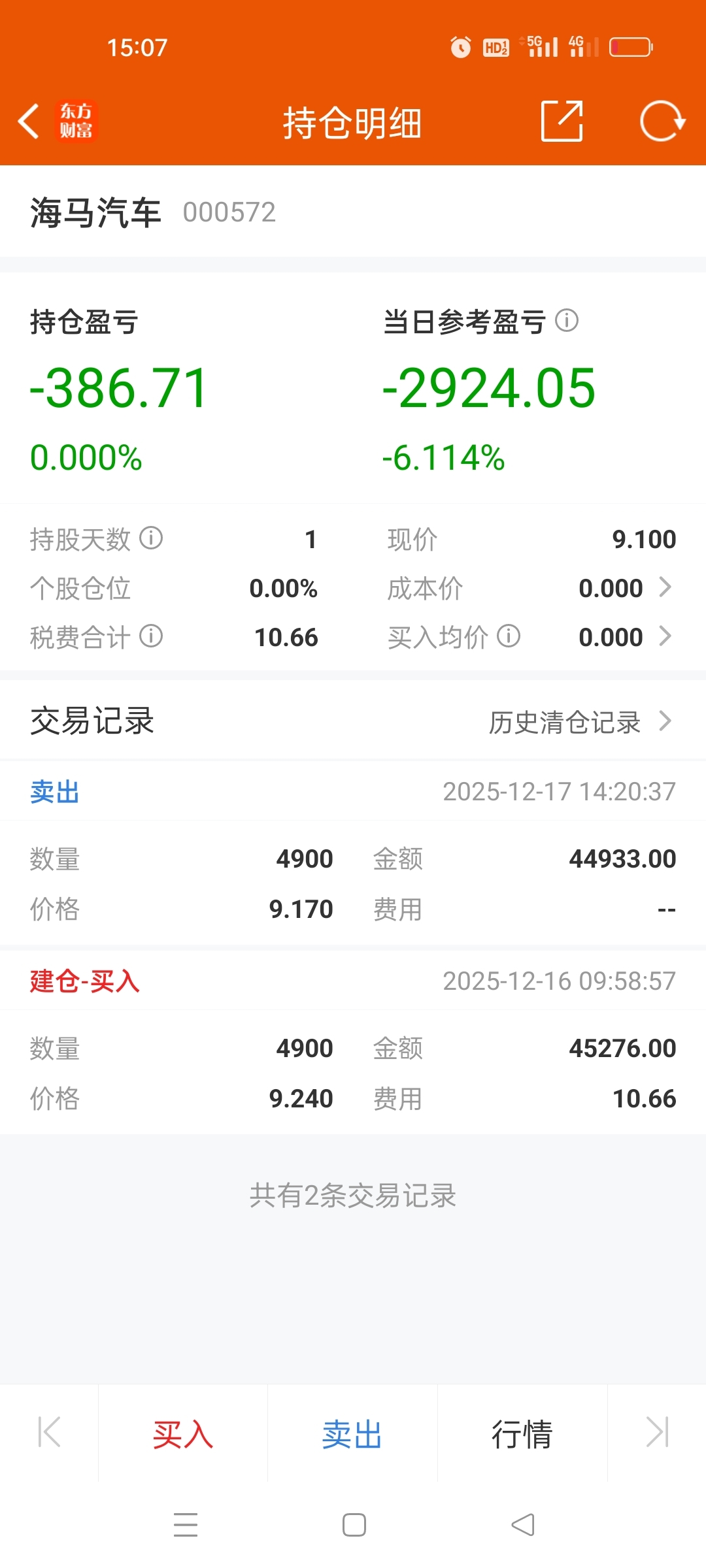 $海马汽车(SZ000572)$ 今天太失误了!早上忘了!想起来就晚了!