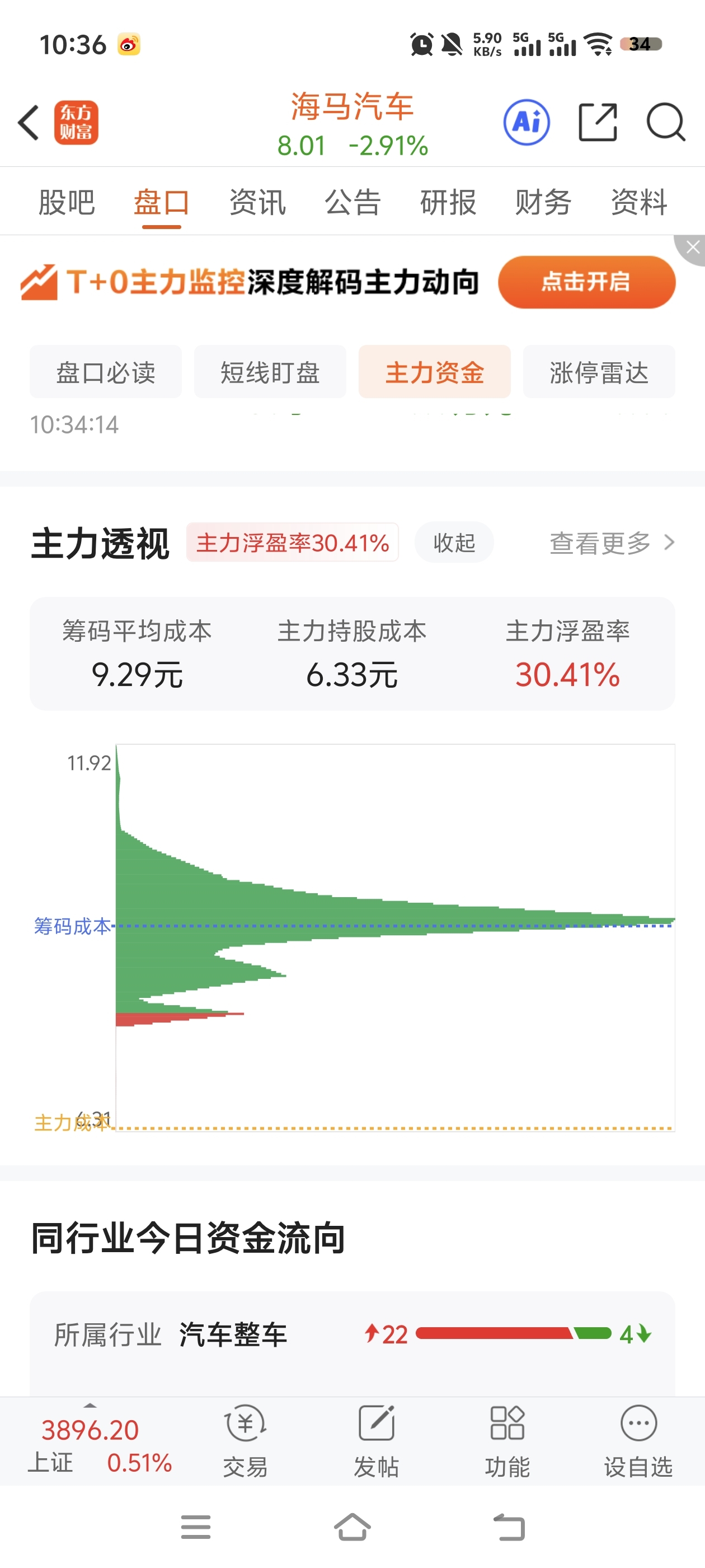 $海马汽车(SZ000572)$ 主力成本6.33