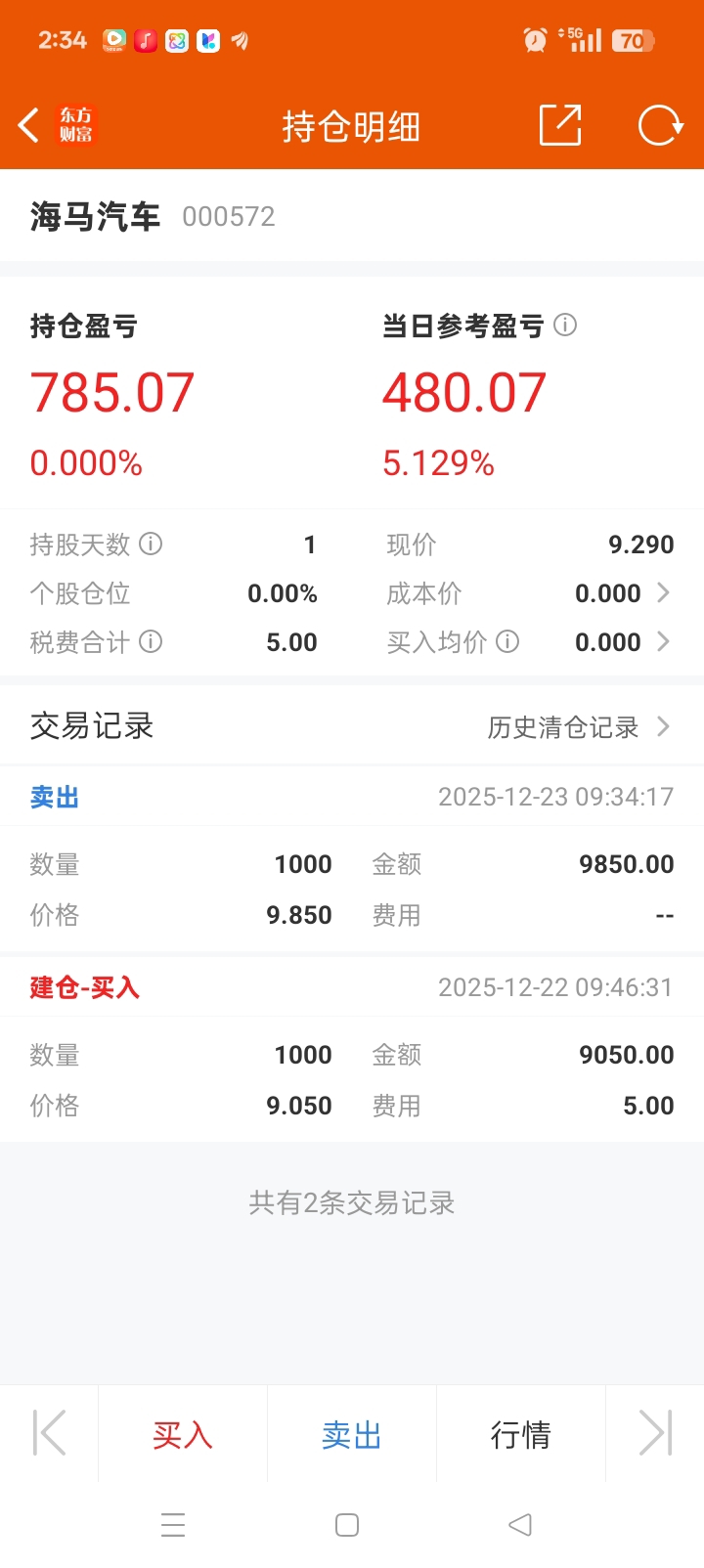 $海马汽车(SZ000572)$ 晒一下我今天的成绩