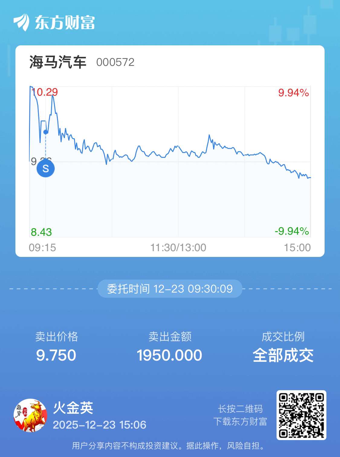 温馨提示: 1.根据《证券法》规定,禁止编造、传播虚假信息或者误导性信息,扰乱证券市场;2.用户在本社区发表的所有资料、言论等仅代表个人观点,与本网站立场无关,不对您构成任何投资建议。用户应基于自己的独立判断,自行决定证券投资并承担相应风险。《东方财富社区管理规定》