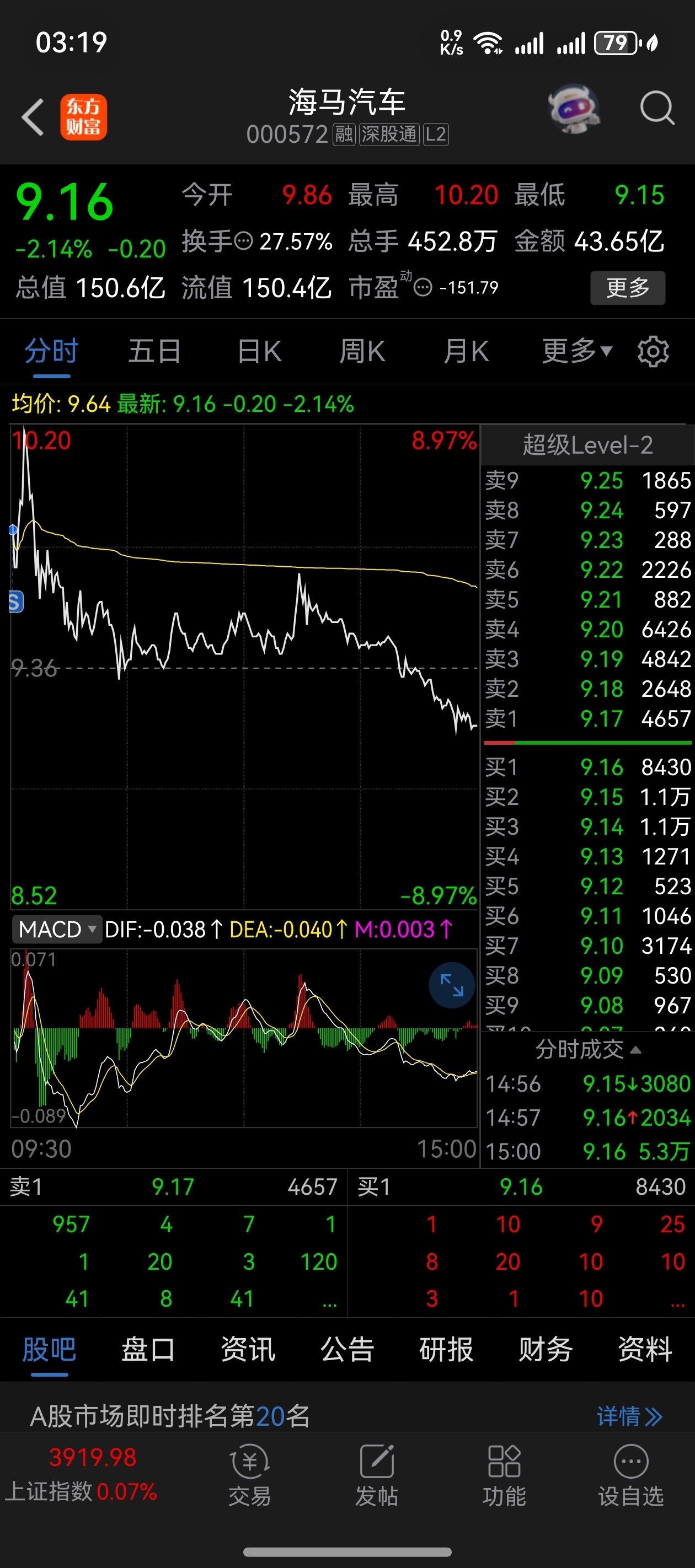 $海马汽车(SZ000572)$ 一日游狠狠拿捏,开盘就跑了,少挣总比亏了强