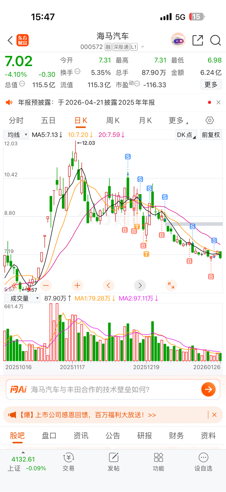 $海马汽车(SZ000572)$ 其实还是不错的 明天可以进