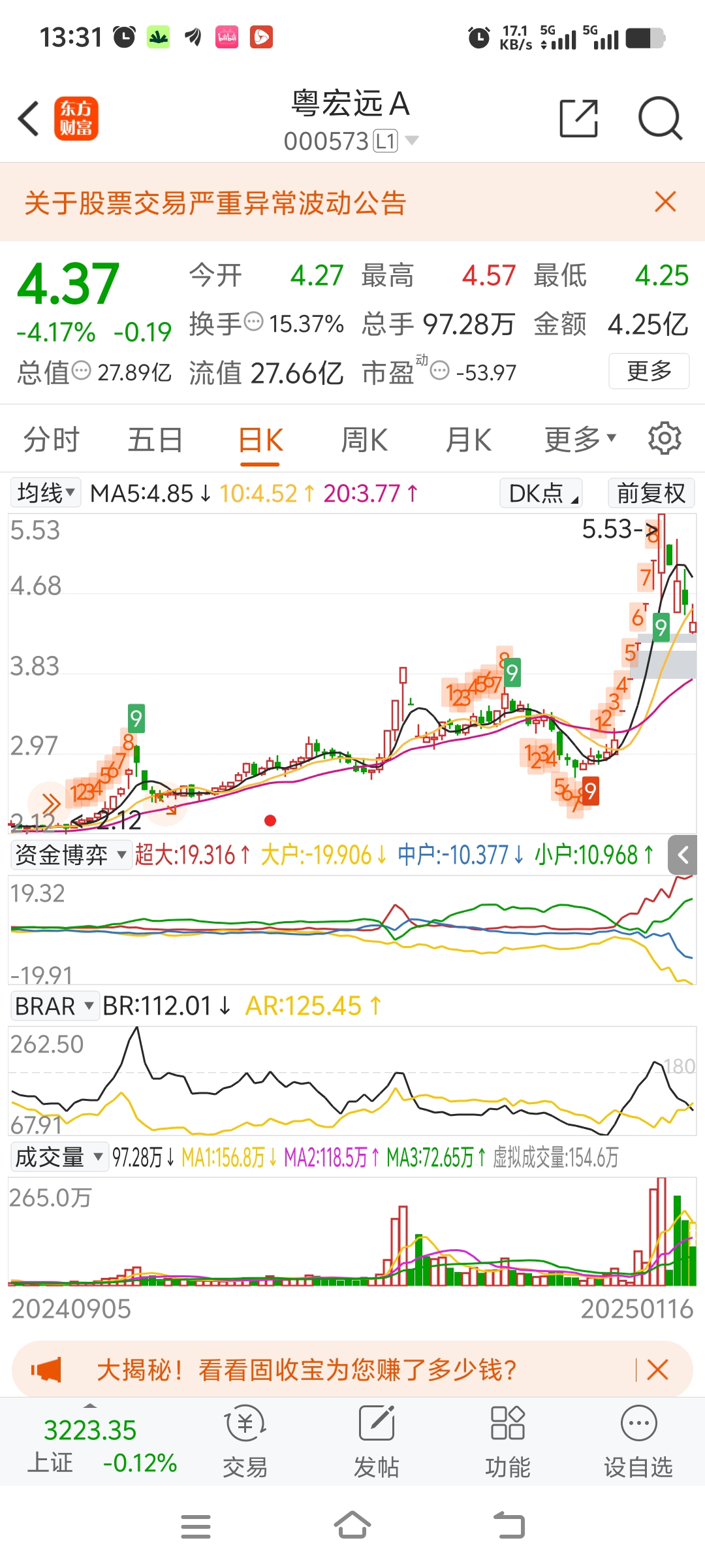 $粤宏远A(SZ000573)$ 超级资金一直在买,小散一直在割肉,悲哀