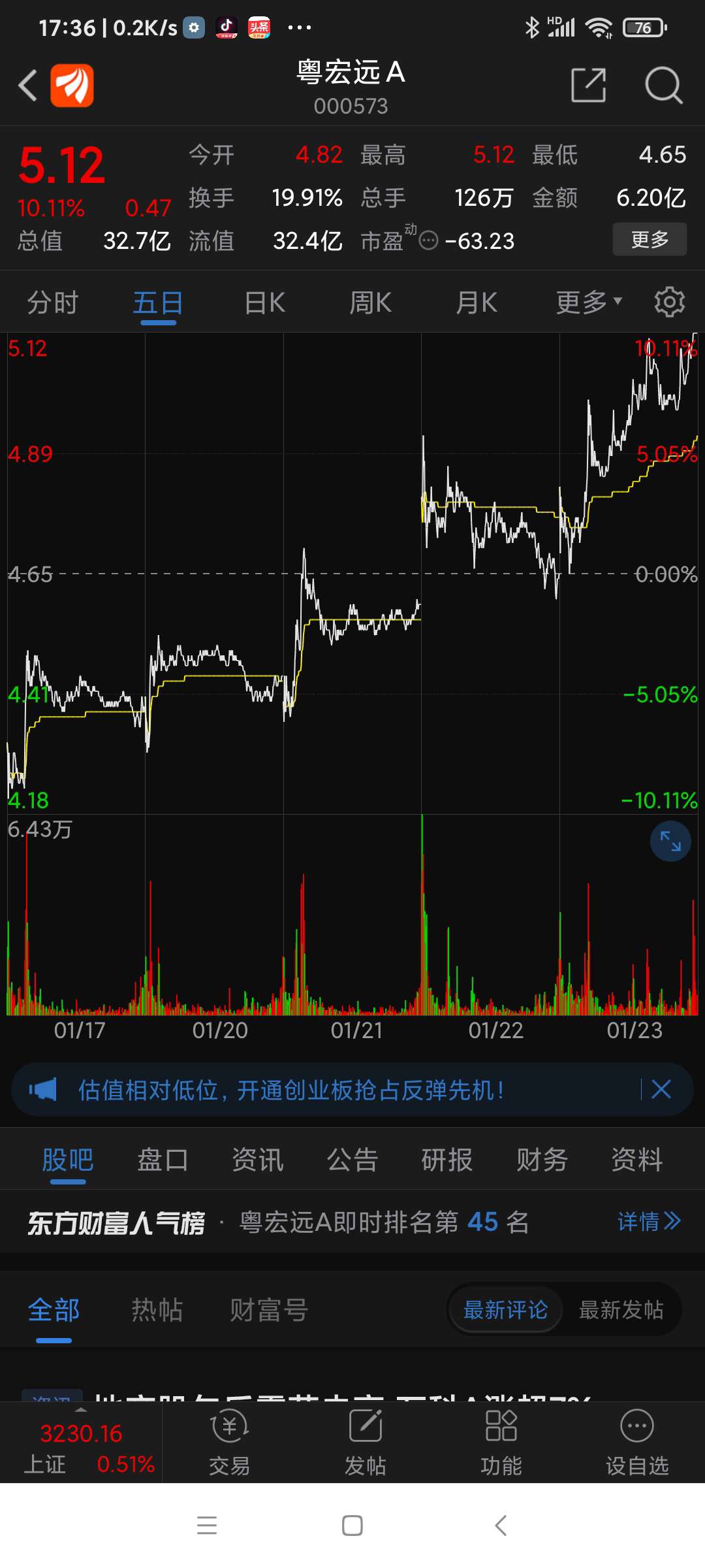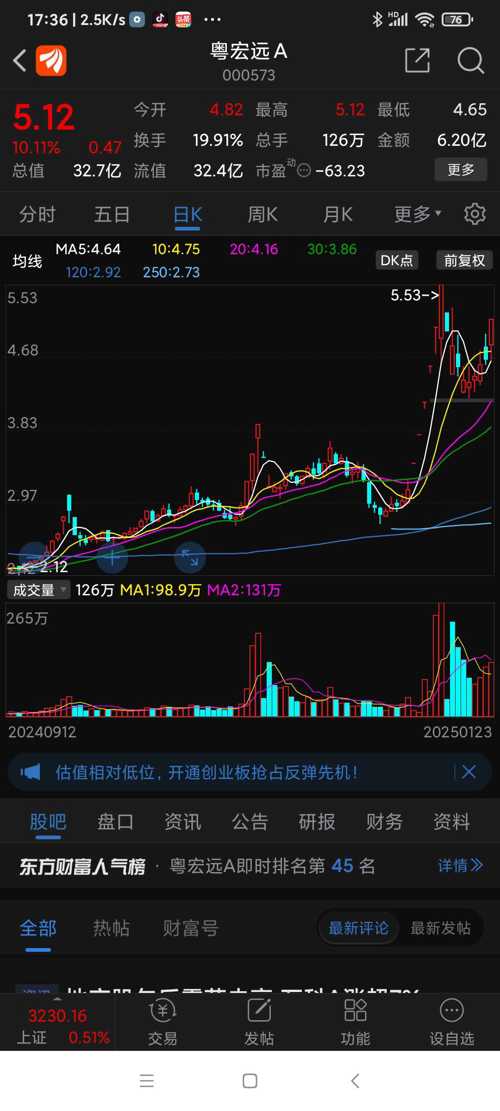 今日(250123四)表现逆势涨停,满分!粤宏远主业转型在路上……