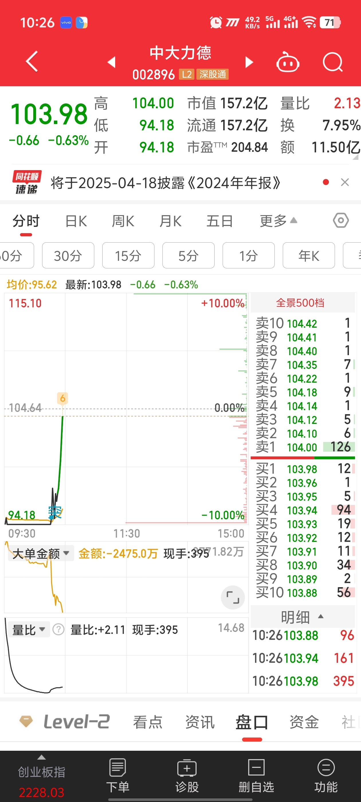 $粤宏远A(SZ000573)$ 中大力德都地天板了