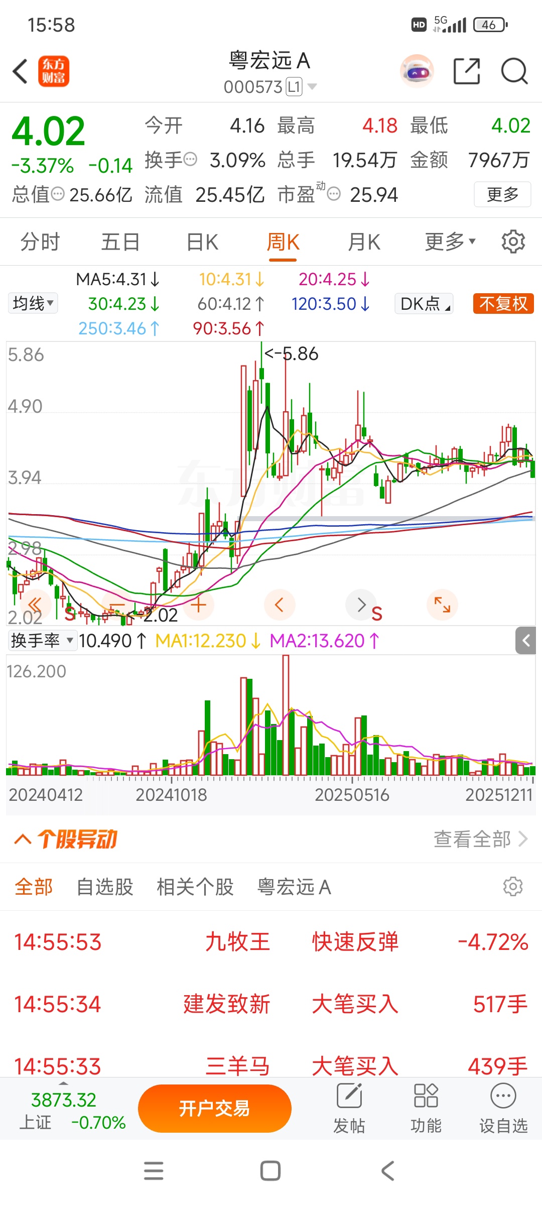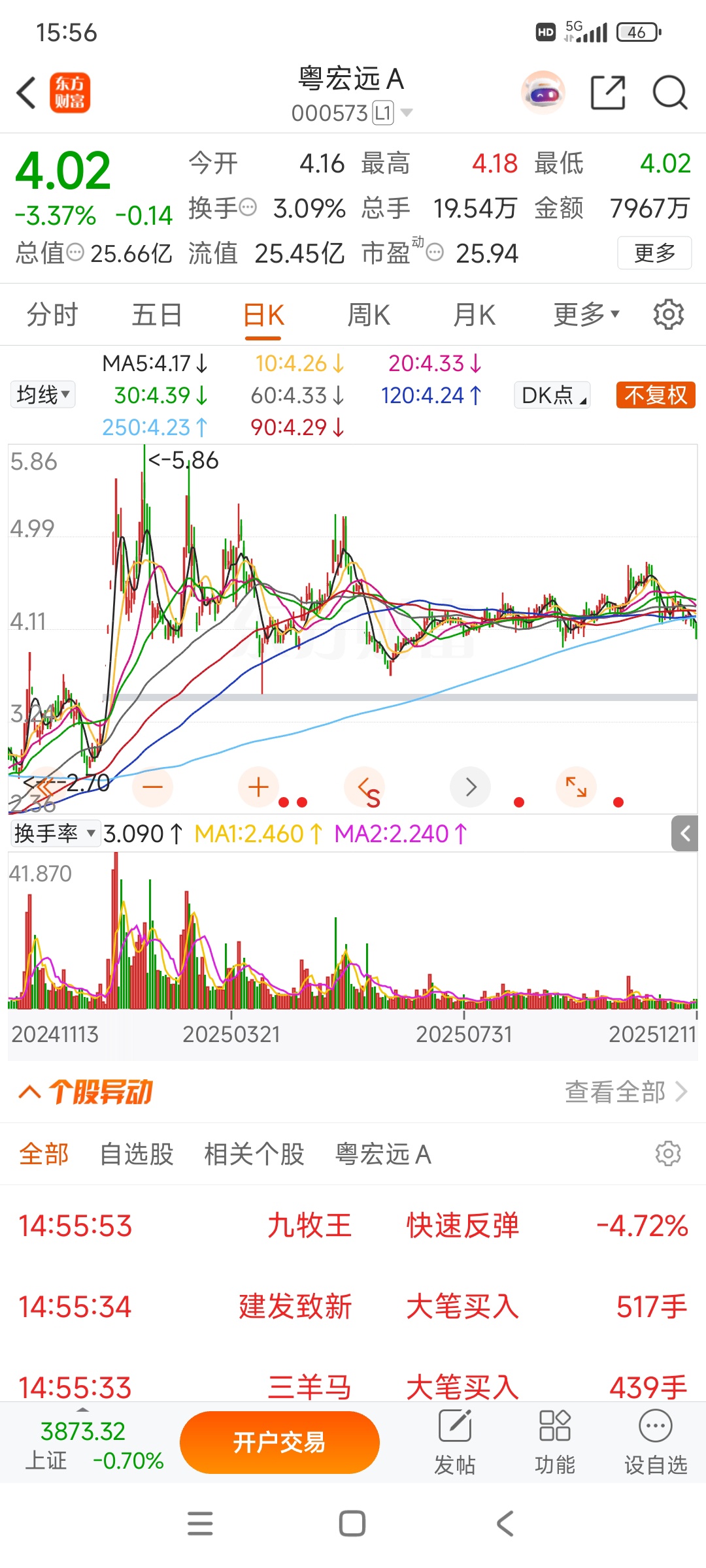 开盘集合竞价518出了万科上午408又进了宏远看它貌似跌不下去了