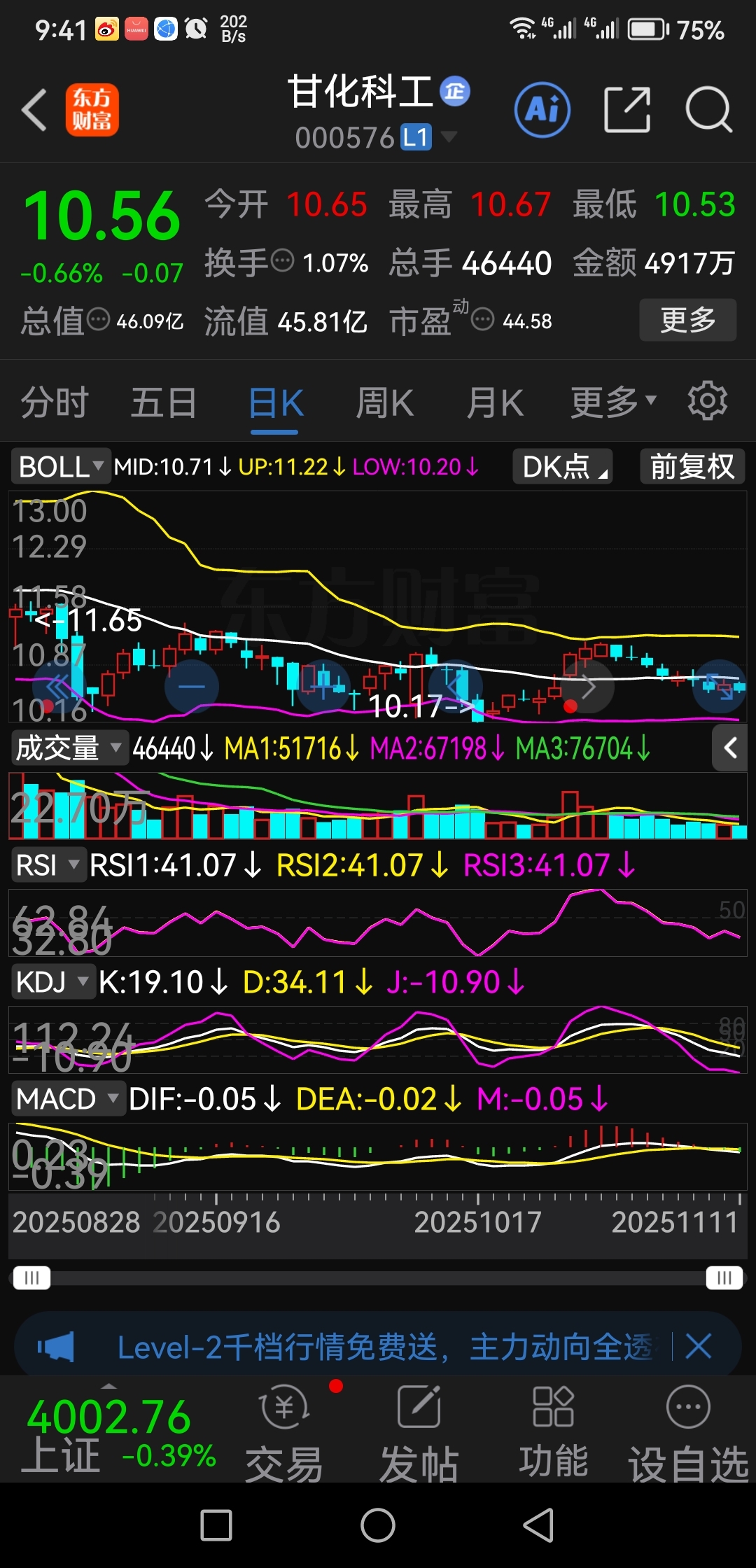 甘华~日线触底尾声中,随时会有反抽或反弹,明周三,大盘还有向下动力,逢急跌可捡货,今报收10.56。