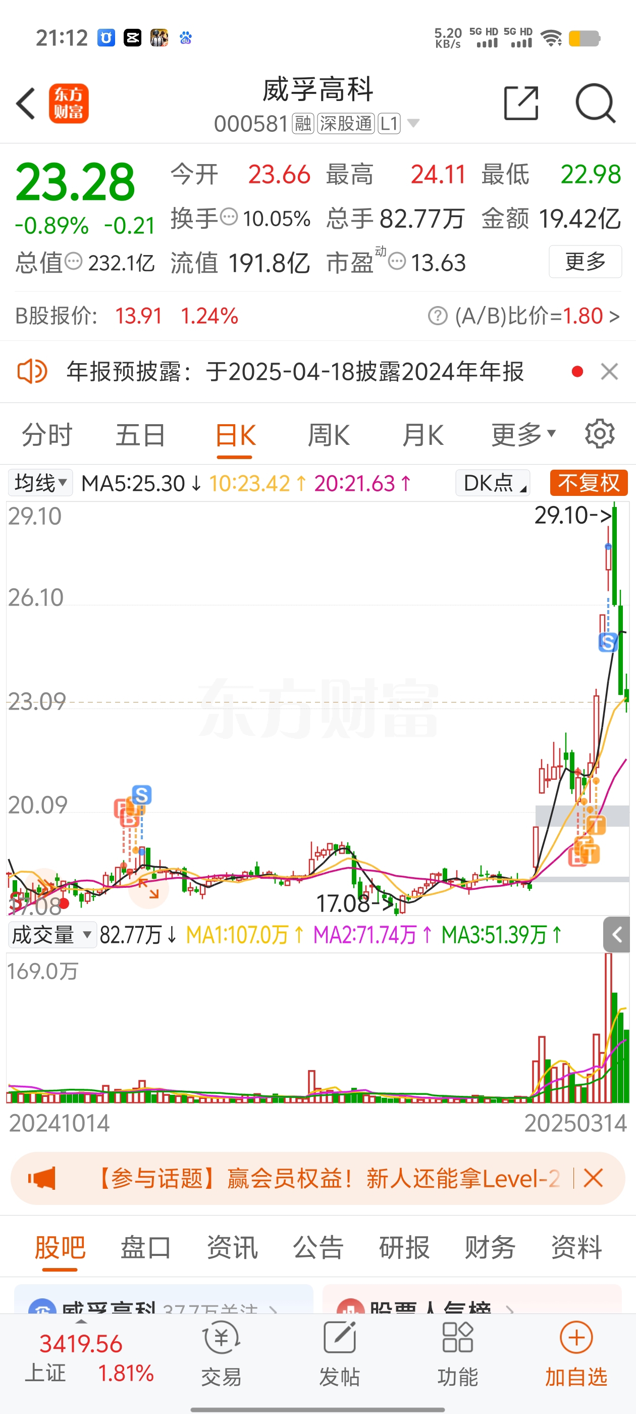 $威孚高科(SZ000581)$ 周一要开盘买入