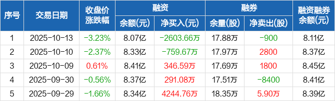 威孚高科:融资净偿还2603.66万元,融资余额8.07亿元(10-13)