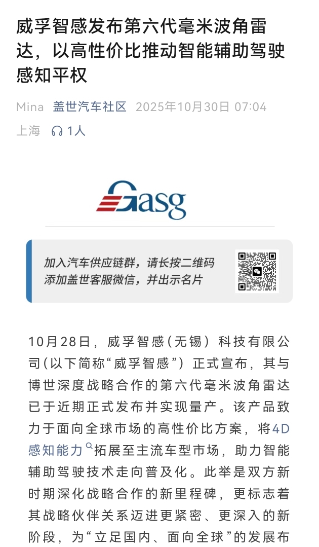 $威孚高科(SZ000581)$ 威孚今早突发利好,新一代激光雷达上市,必然车企大面积采购,虽然走势一般,但长期看50目标不变,大家可探讨!