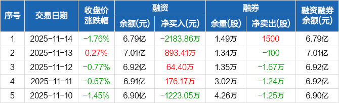 威孚高科:融资净偿还2183.86万元,融资余额6.79亿元(11-14)