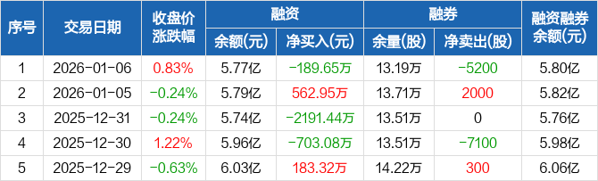 威孚高科:融资净偿还189.65万元,融资余额5.77亿元(01-06)