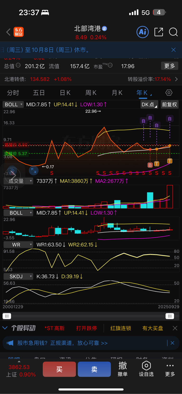 $北部湾港(SZ000582)$ 从年线看还是上升趋势