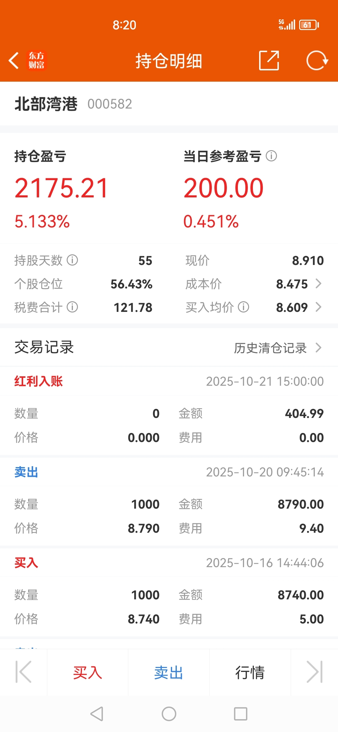 $北部湾港(SZ000582)$ 滴,你的分红已到账。可惜昨天卖飞了一千股,合理明天要开始回调了,等下来再接着买。