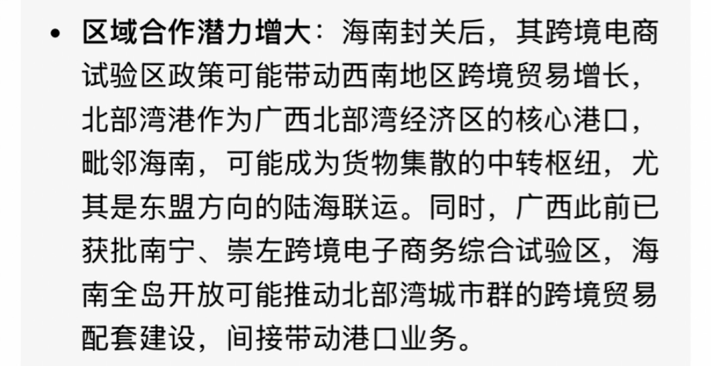 不管是与东盟签了协议,还是海南封关,对北部湾港都是重磅级利好!不要走,不要卖在黎