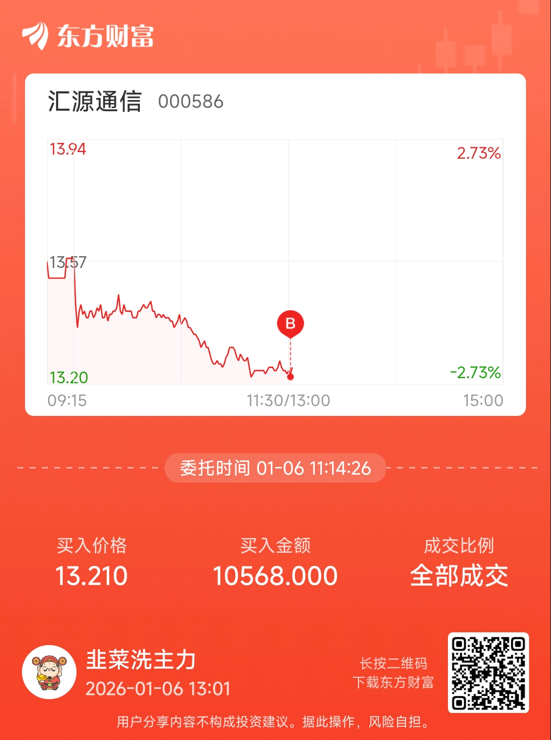 温馨提示: 1.根据《证券法》规定,禁止编造、传播虚假信息或者误导性信息,扰乱证券市场;2.用户在本社区发表的所有资料、言论等仅代表个人观点,与本网站立场无关,不对您构成任何投资建议。用户应基于自己的独立判断,自行决定证券投资并承担相应风险。《东方财富社区管理规定》