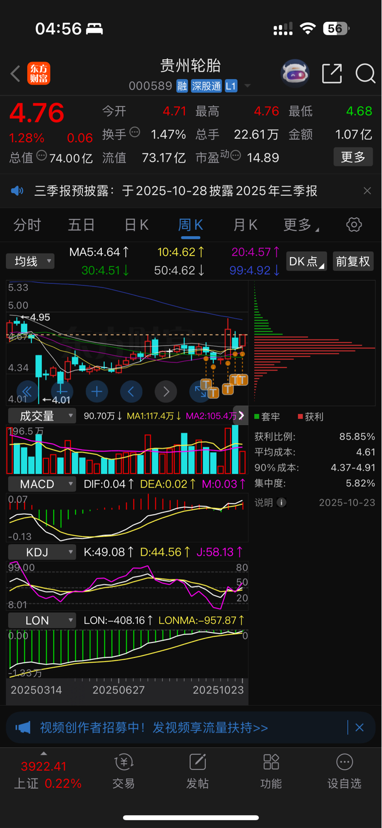 $贵州轮胎(SZ000589)$ 50周线变成支撑,Lon变红就涨