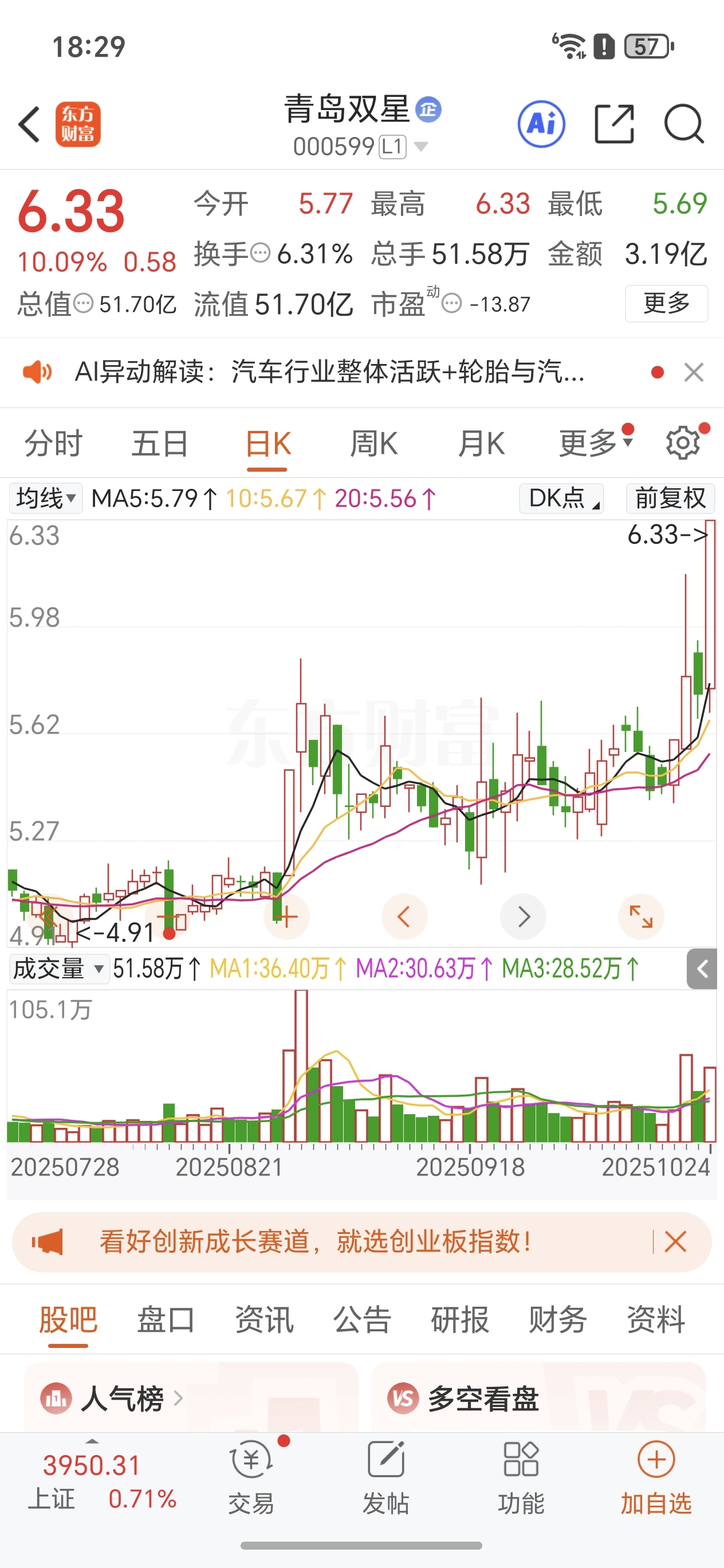 $贵州轮胎(SZ000589)$ 青岛双星创新高了,中信空苟