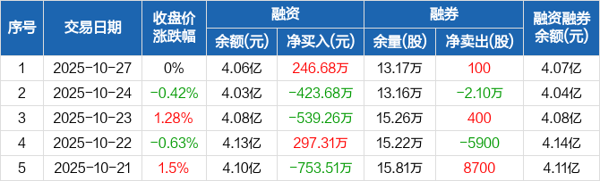 贵州轮胎:融资净买入246.68万元,融资余额4.06亿元(10-27)