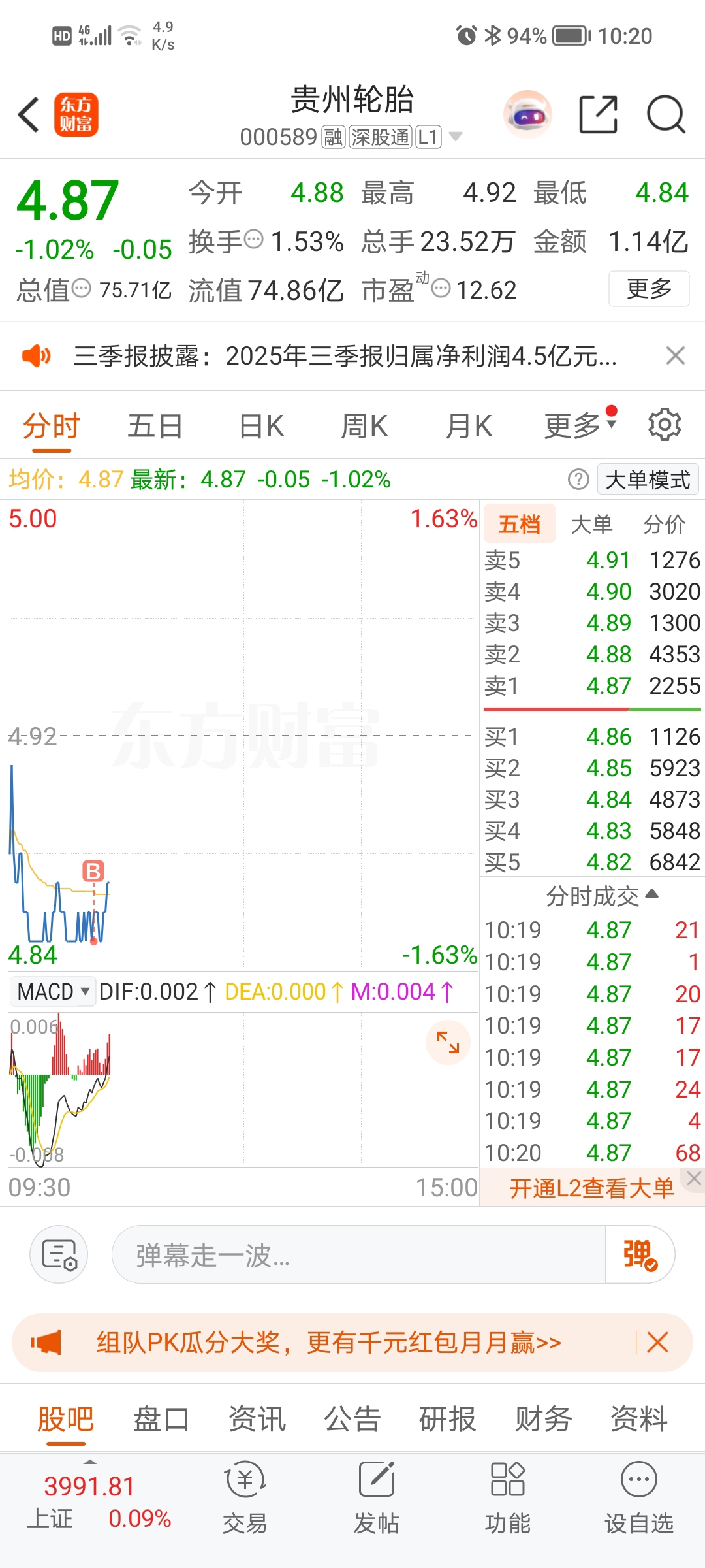 $贵州轮胎(SZ000589)$ 不知道有没有机会