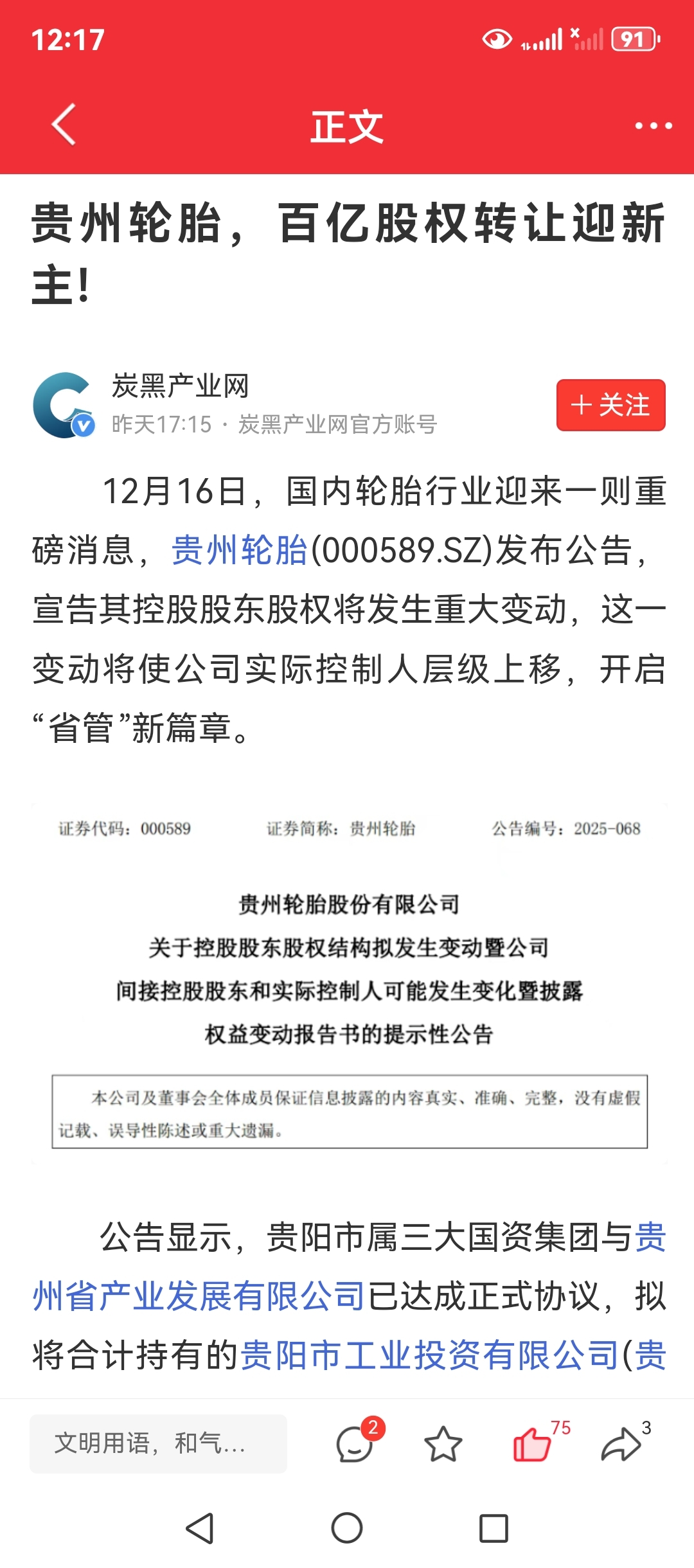 $贵州轮胎(SZ000589)$ 100亿股权收购,资产注入惭行渐近。