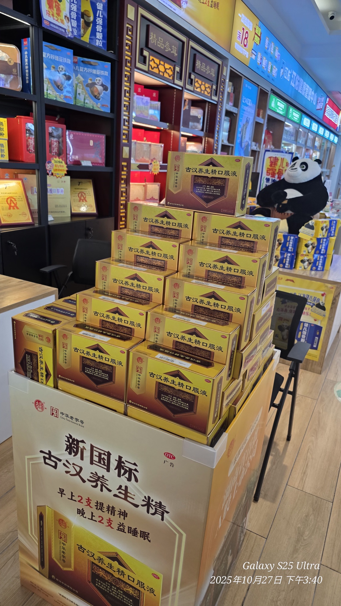 $启迪药业(SZ000590)$ 恒昌的药店,古汉养生精摆在最显眼的位置,销售员大力推广。跟售货员聊天,一天可以卖50多盒,一盒售价79元,大概一天销售额4000元。这只是一家门店
