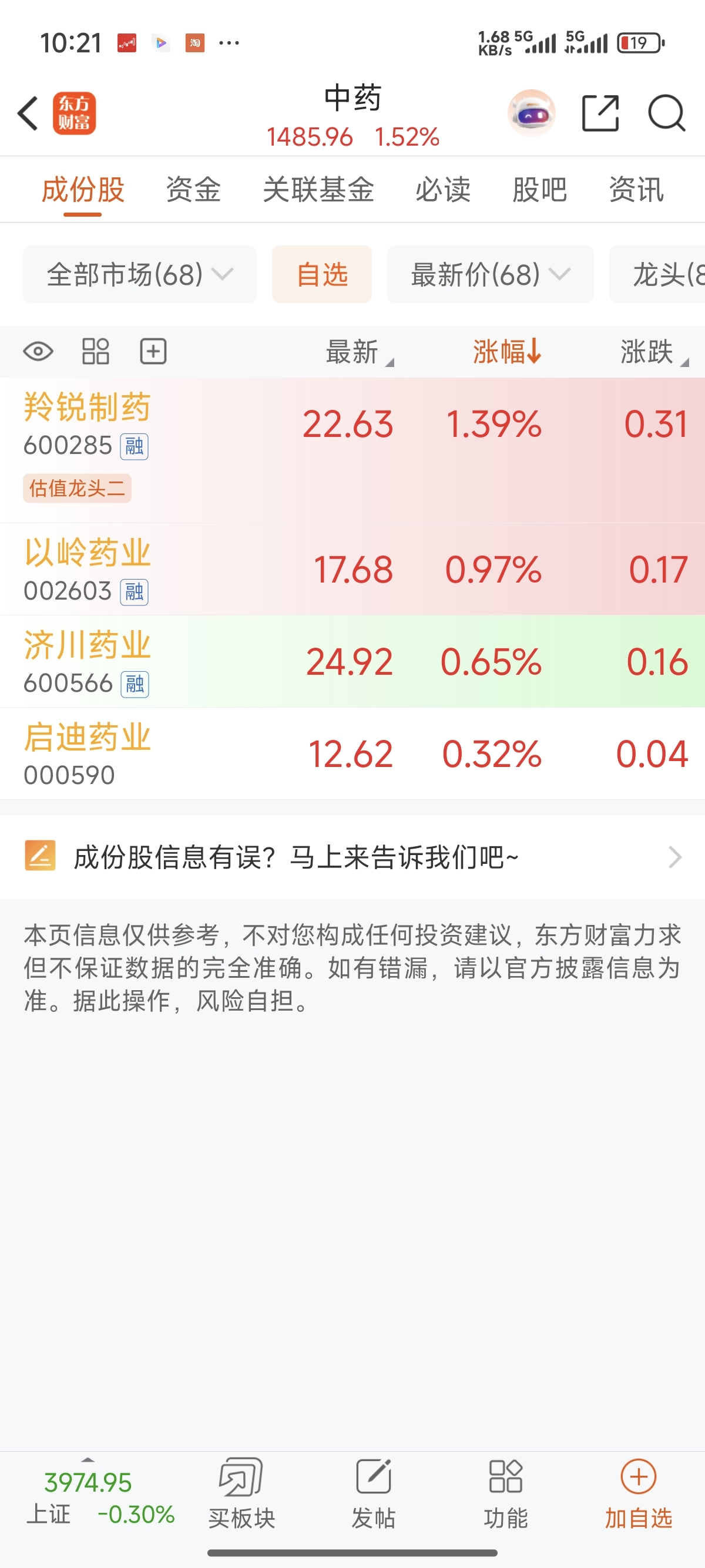 $启迪药业(SZ000590)$ 哦shift 每次都是自选板块倒数第一