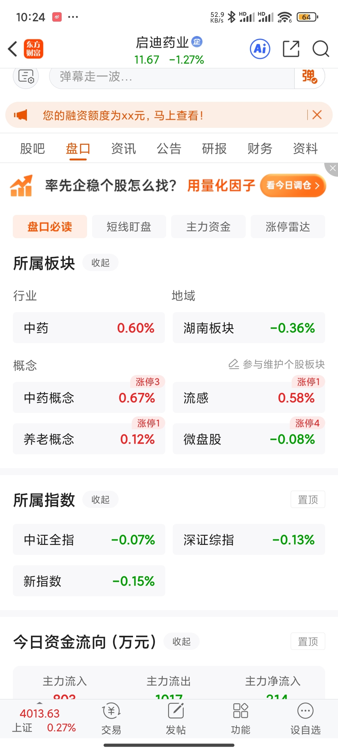 $启迪药业(SZ000590)$ 大盘和板块都带不动你吗