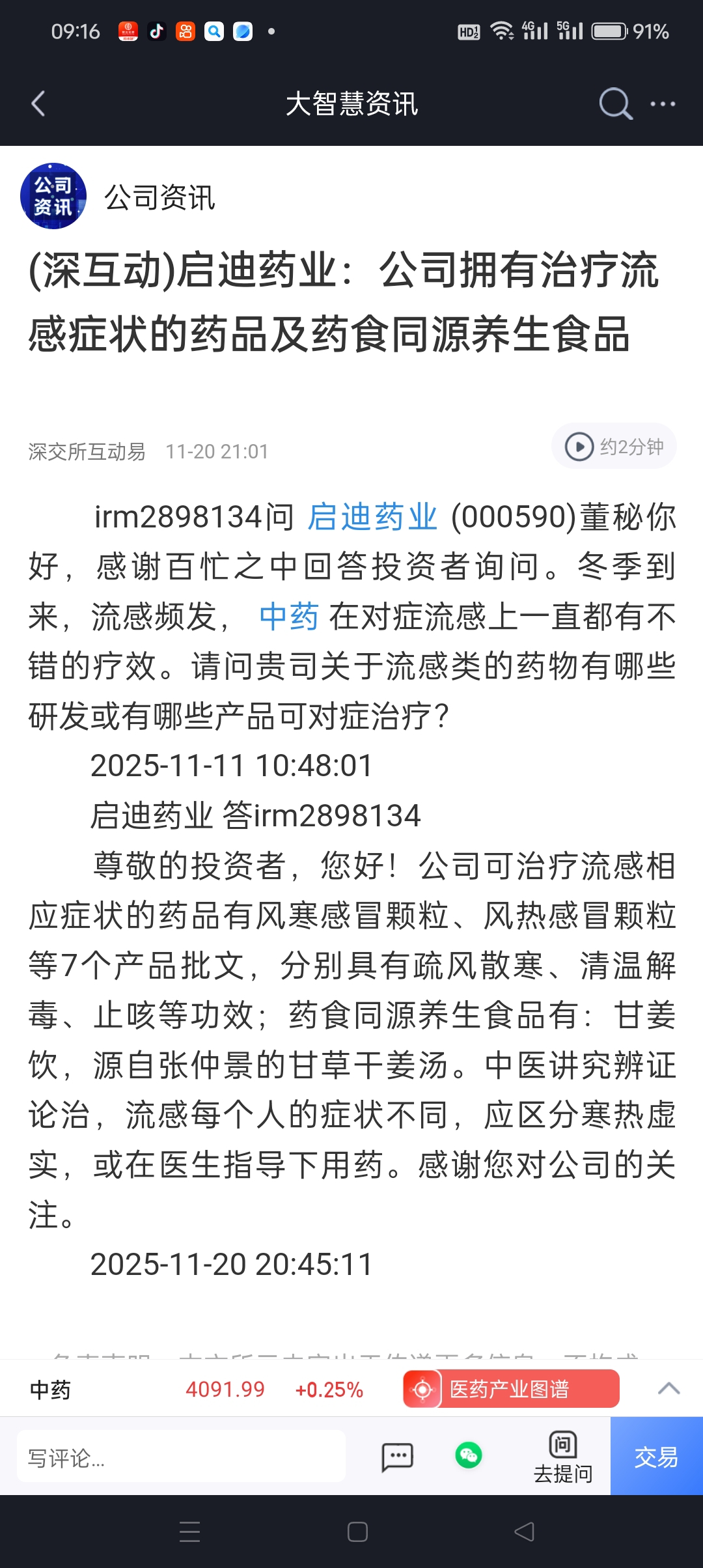 $启迪药业(SZ000590)$ 现在好多平台上,包括直播带货的,火的一个方面好多是说白了会表达,让你看见后再一听说,你就有想买了的冲动了!咱再看看启迪,治疗感冒还有药食,单看这题目就不提气,就觉得这个药平平,你说,告诉那么多人,还有销售,难道没有读到这个报道