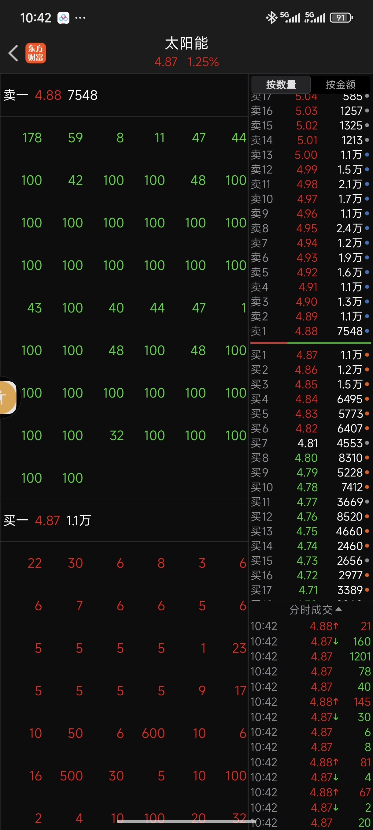 $太阳能(SZ000591)$ 看这图,这是出货还是洗盘?这么多100手!
