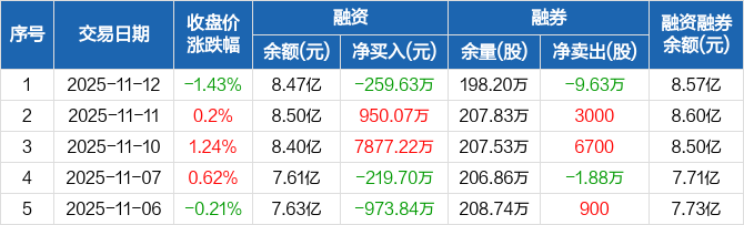 太阳能:融资净偿还259.63万元,融资余额8.47亿元(11-12)