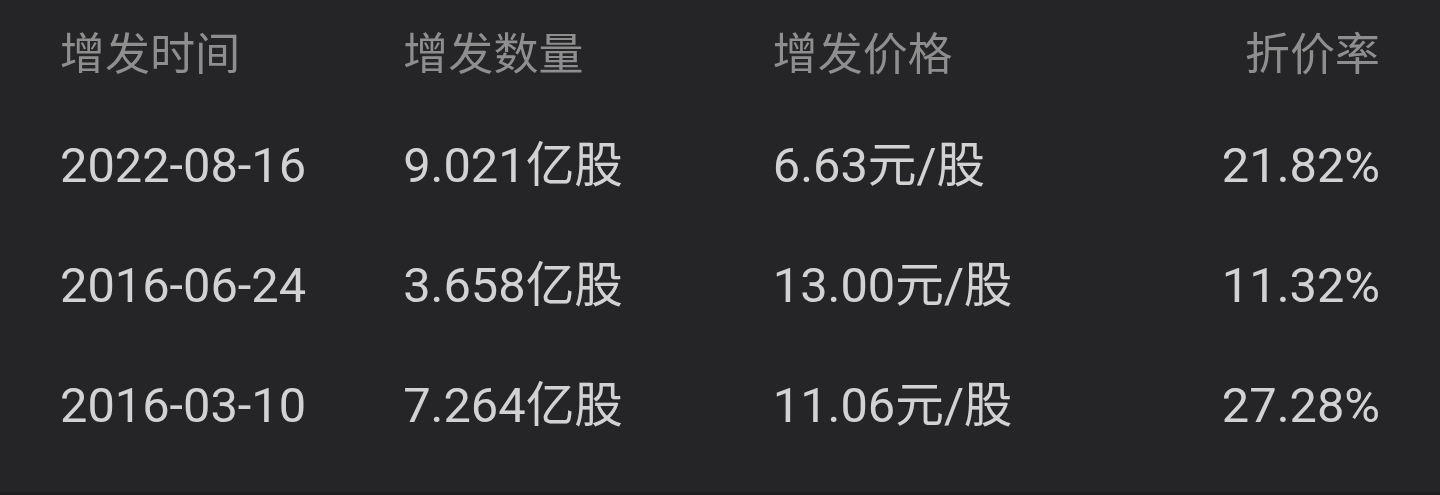 3次增发价格