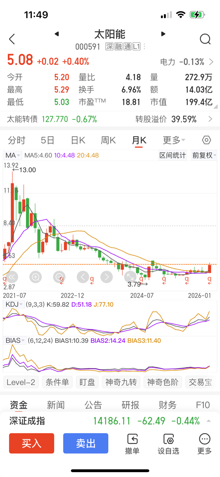 $太阳能(SZ000591)$ 非常漂亮的底部发力,难得的好股。去外面追翻翻的要半条命了,不如这个安全,至少看到8元