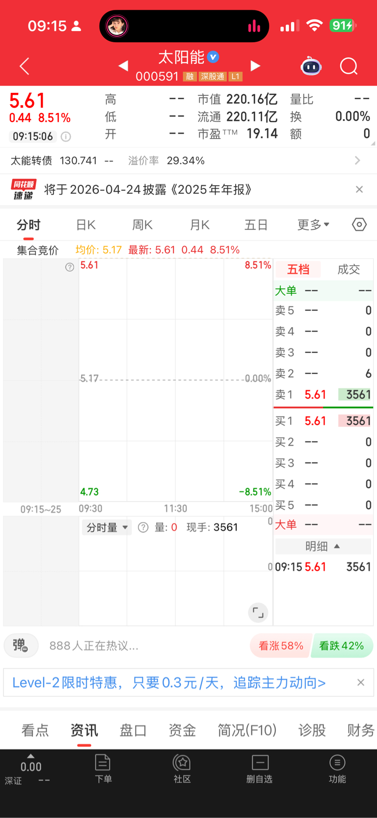 $太阳能(SZ000591)$ 这是要涨停吗?还不抓紧进来吃肉